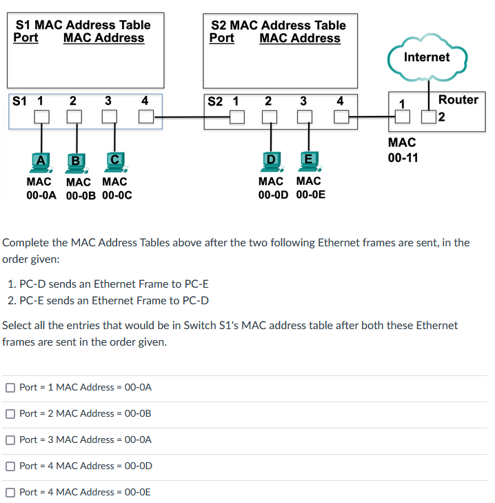 Solved S1 Mac Address Table Port Mac Address S2 Mac Address Chegg Com