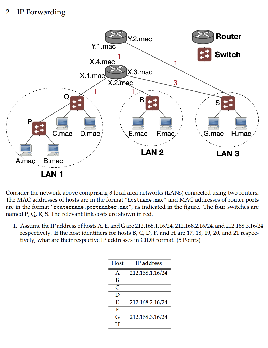 Solved 2 Ip Forwarding Router Switch 1 Y 2 Mac Y 1 Mac 1 Chegg Com